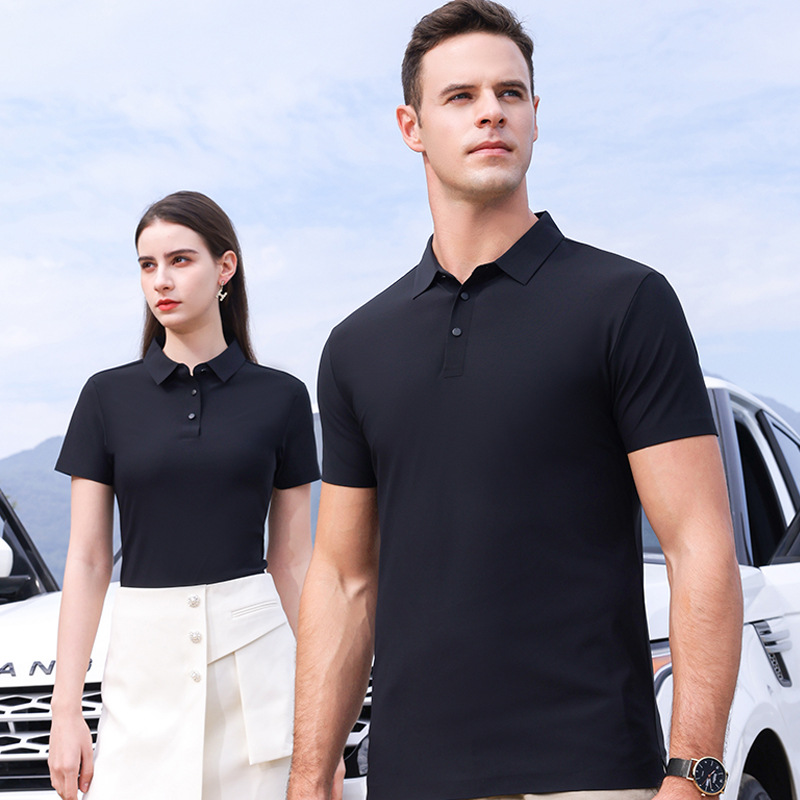 ハイエンドの無痕エンボス速乾氷糸涼しいシルク滑り抗シワ軽ビジネス襟半袖poloシャツtシャツカスタマイズ