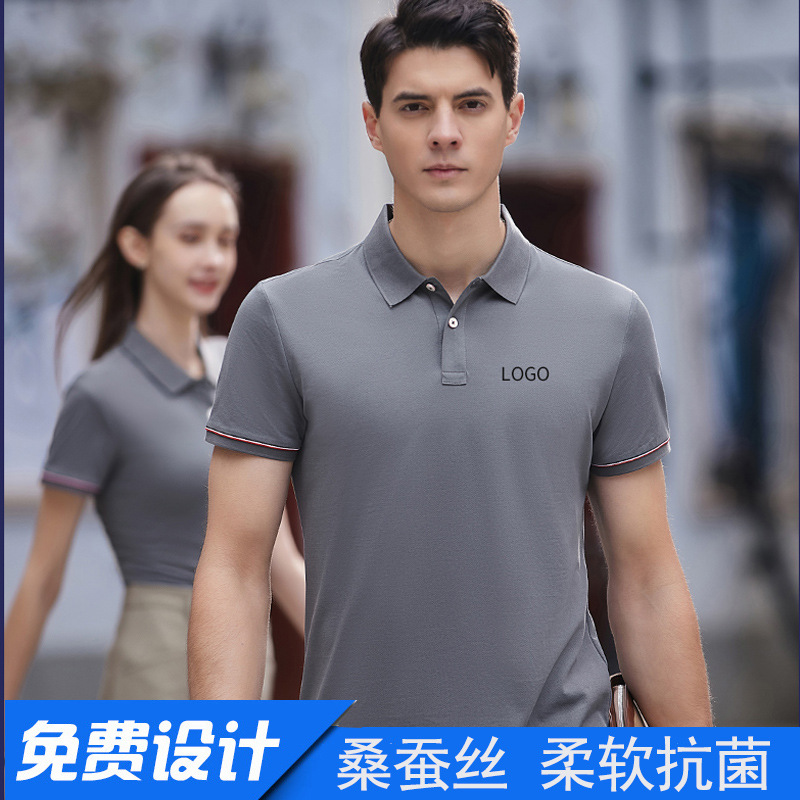 高級ビジネス5A抗菌性、柔らかく通気性があり、耐久性のある、セカンドラペル仕様の作業服、半袖桑蚕糸ポロシャツのカスタムメイド