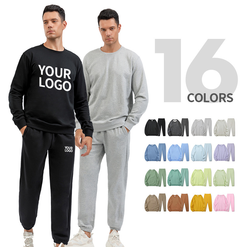 団体スポーツスーツの男性春秋クロスボーダーの足の衛ズボンの純綿のゆるい欧米の丸首の衛衣の男性は注文して注文します。