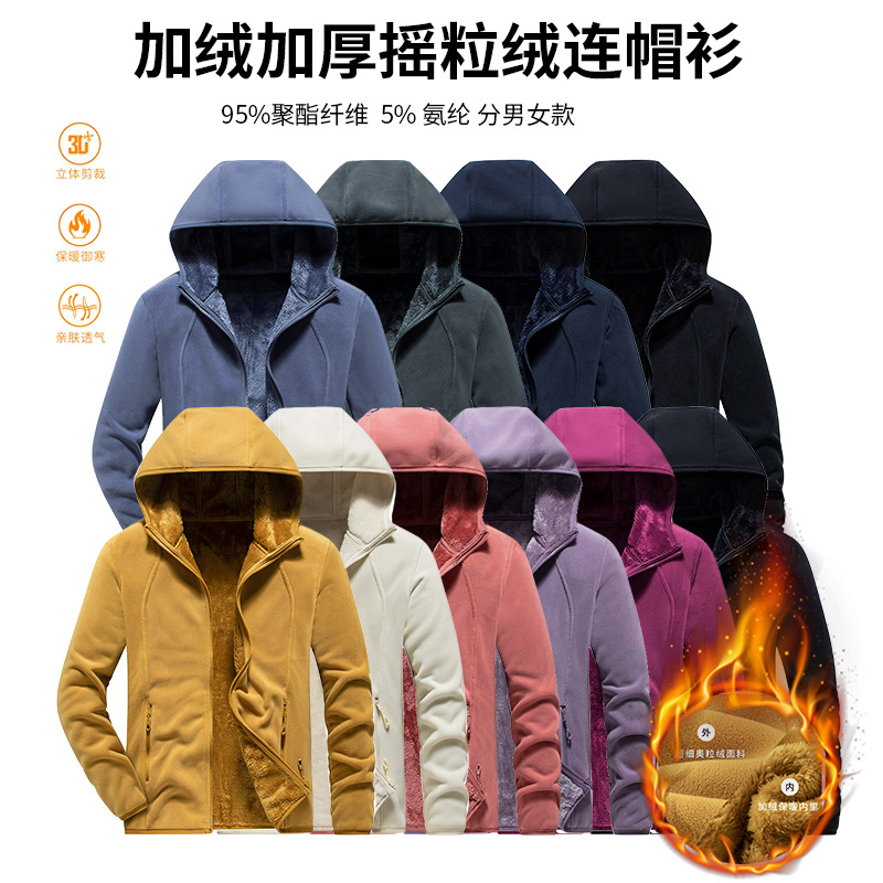 厚手カーディガンジャケット、フーディ、長袖メンズジップアップスウェットシャツ、秋冬用、クロスボーダーポーラーフリースフード付きジャケット、カスタムメイド