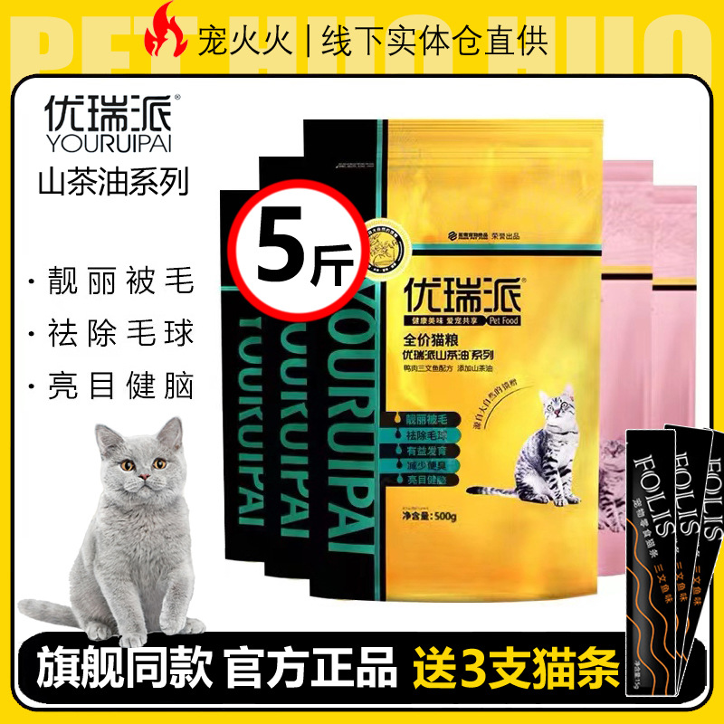 2.5kg ユリパイ キャットフード 500g×5袋 アヒル肉・サーモン・牛肉・椿油 定価 成猫・子猫用主食