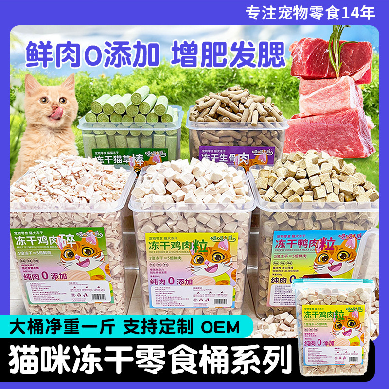 オリジナル猫用スナック フリーズドライバレル 鶏肉とアヒルの肉粒 生骨肉 猫草スティック 猫フリーズクリーン 重量500gバレル