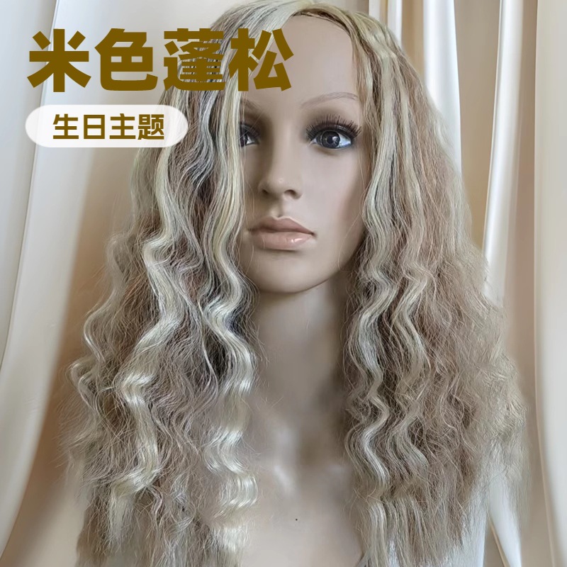 メーカー直販爆発頭パーティー欧米アフリカかつらカバー超大型アマゾンベージュふわふわ大波かつら