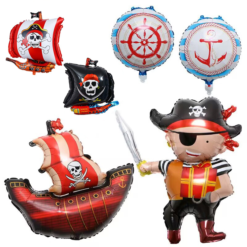 アマゾン海賊船スカルアルミ膜風船海賊誕生日パーティー装飾装飾アルミ箔風船卸売り