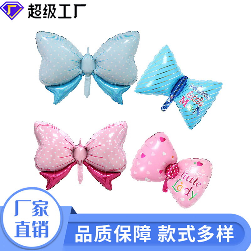 【恒越】赤ちゃんの1歳の誕生日、100日のお祝い、デコレーション用の蝶結びアルミフィルム風船、ウェディングスタイルの蝶の羽風船