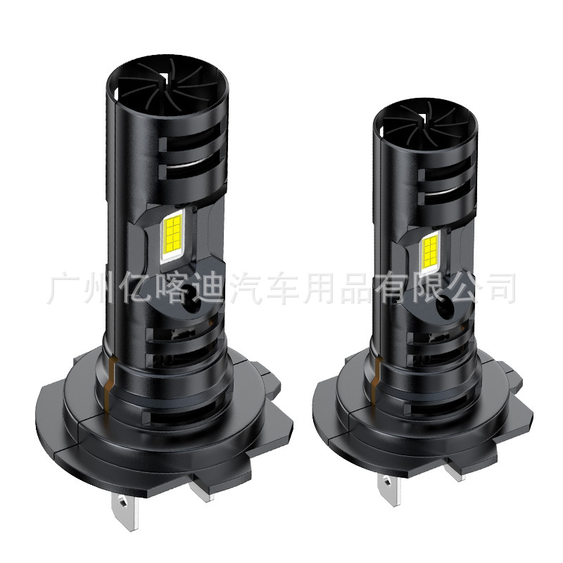 クロスボーダー LED 車のヘッドライト プラグイン一体型ハイ/ロービーム H7 ヘッドライト ダブルファン ブラック アルミニウム パーツ 1:1 ヘッドライト
