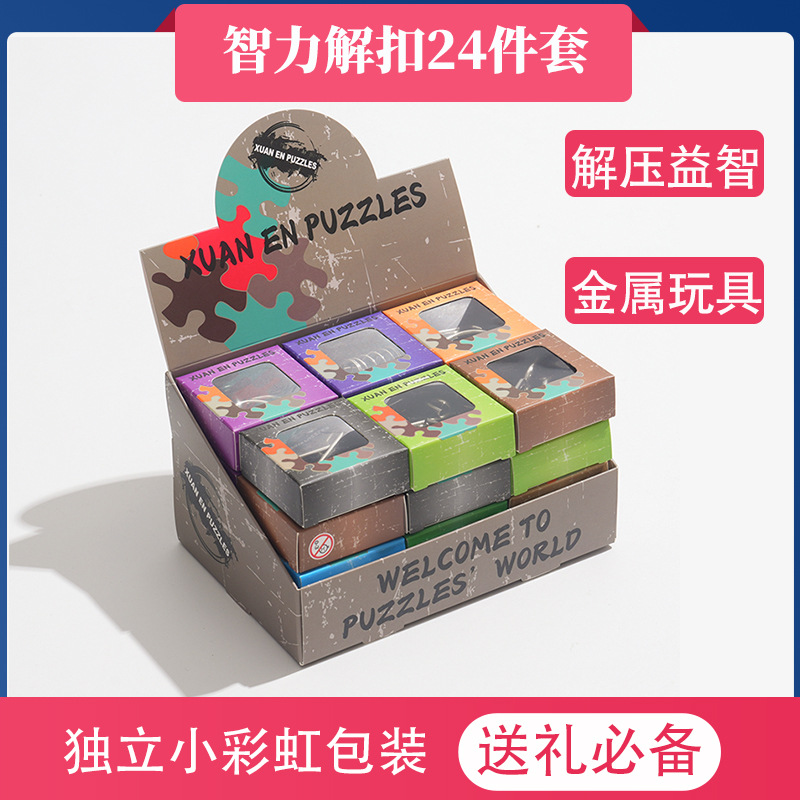 九連環知力解ボタン24点セット子供魯班錠孔明錠セット小学生益智玩具解環ボタン