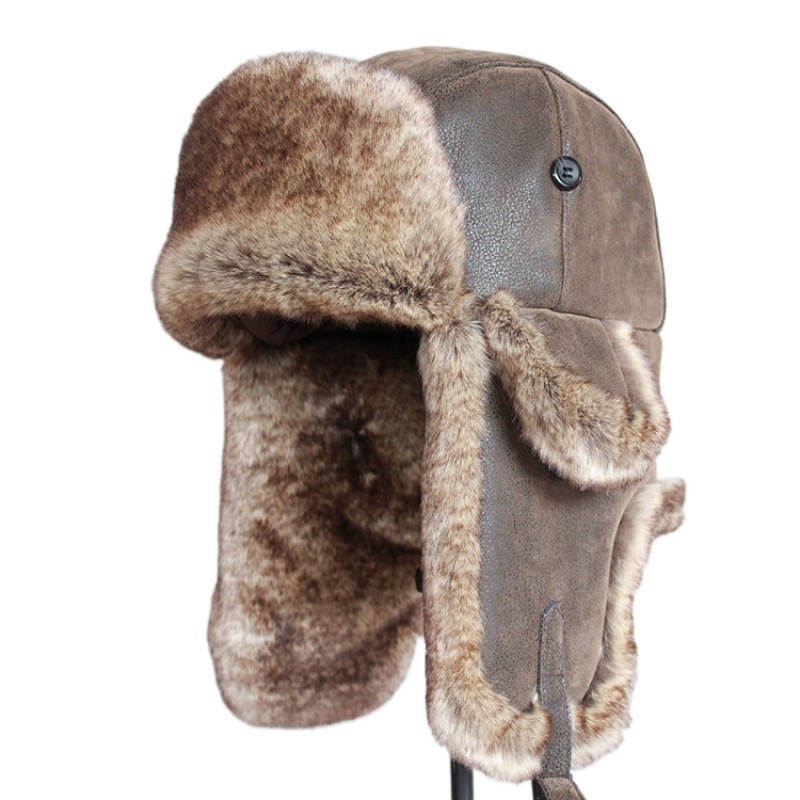 PU革雷鋒帽男性女性冬耳保護帽東北帽中高年防寒シボ人造革成人