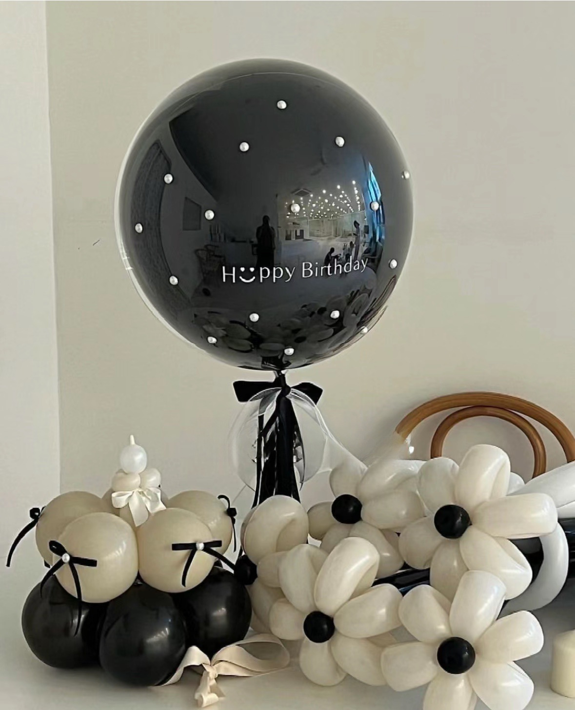 Ins真珠ケーキ風船手作りdiy材料バッグ男子黒誕生日パーティー装飾配置道具