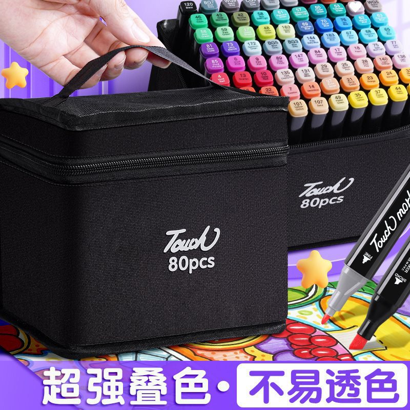 マークペン 小学生 双頭 子供用 油性 速乾 水彩ペン ブラシセット 美術学生 アニメぬり絵