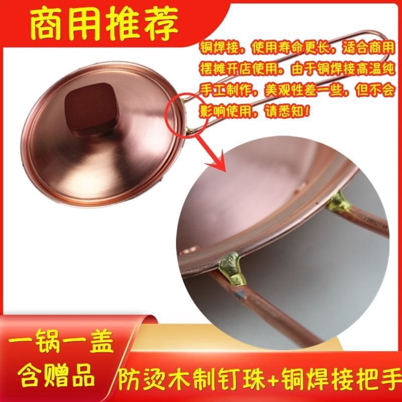 卵焼き鍋、成都スナック、1鍋1蓋、焼き脳花、小さな銅鍋、クリップ付き、卵、無塗装鍋、中高