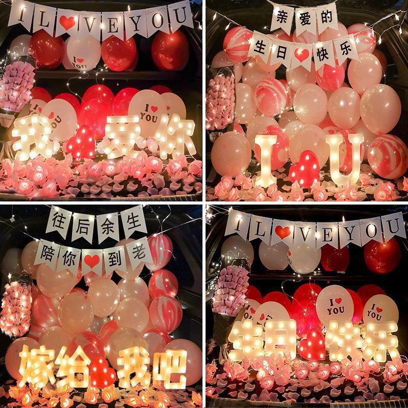 車のトランク 誕生日アレンジメント ガールフレンドの告白 プロポーズバルーン 旦那様へのクリエイティブギフト バレンタインデーギフト ウェン・ウォ