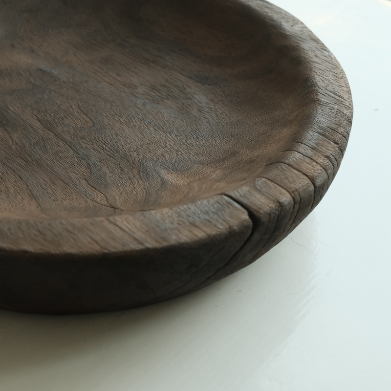 円形の木製の果物の鉢の自然なひび割れの寂しい芸術の果物の皿の木造の中国式の民宿のホテルの見本の間