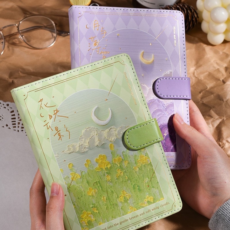 手帳油絵磁気ボタン本シンプル文芸箔押しノート創意日記ノート高颜値ins女子学生