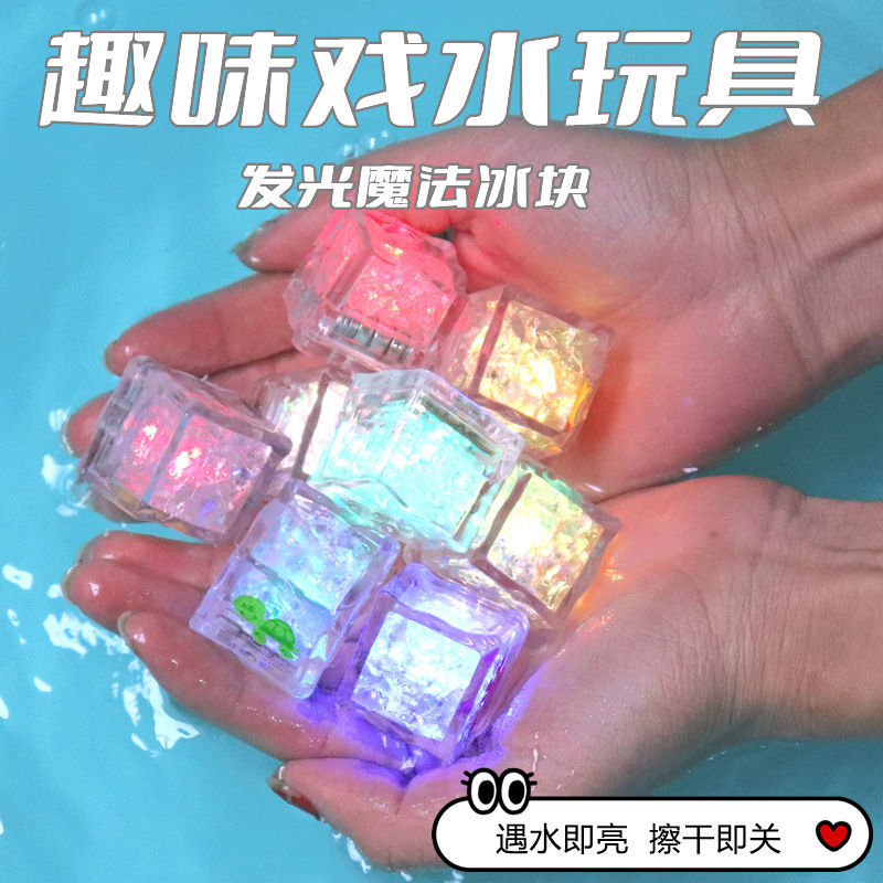 光る氷の赤ちゃんの入浴の魔法の明かりの子供は水遊びをします。