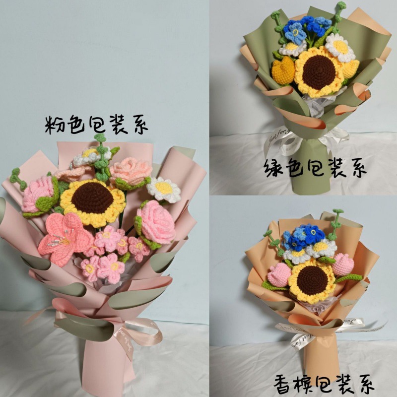 鉤織完成品卸売り完成品花束包装小デイジー康乳馨チューリップ毛糸花が彼女に花をプレゼントする
