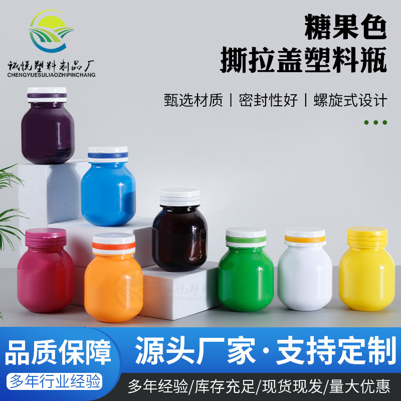 ツートンカラー蓋剤瓶100ml pet広口厚手カプセル瓶VC魚油引き裂き蓋プラスチック瓶100cc