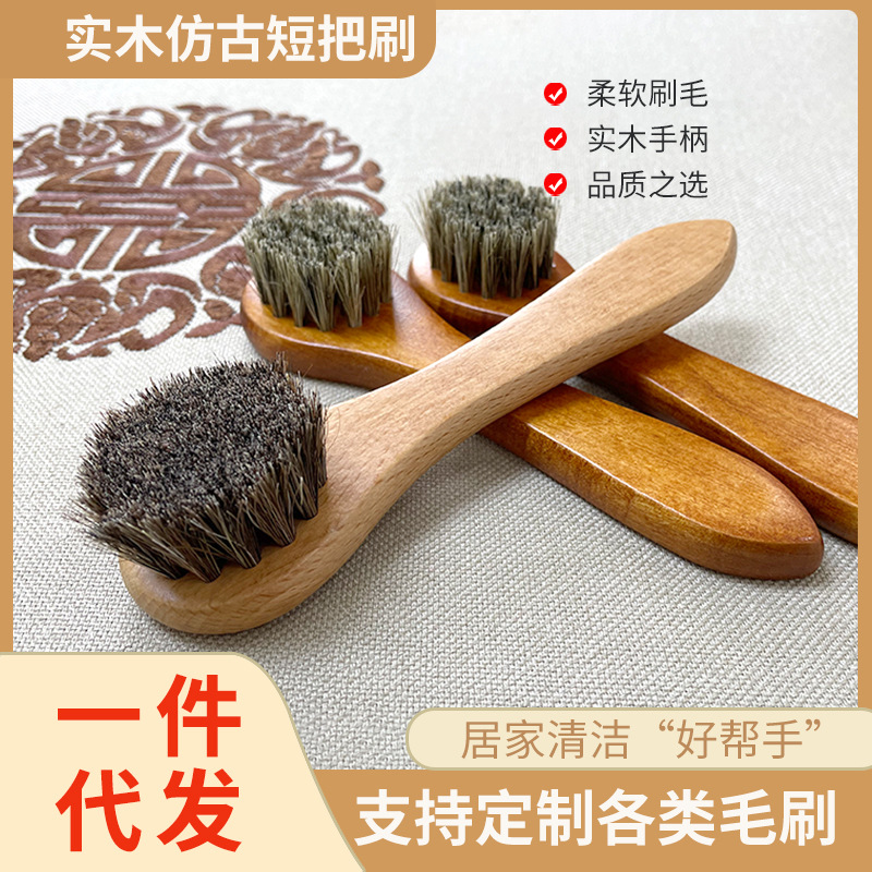 メーカーの卸売り長は丸いケヤキの花の豚の毛をブラシして靴を拭きます。