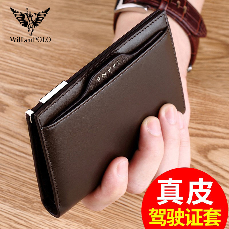 英皇ポール本革財布男性用ショート牛革超薄型縦型財布多機能財布