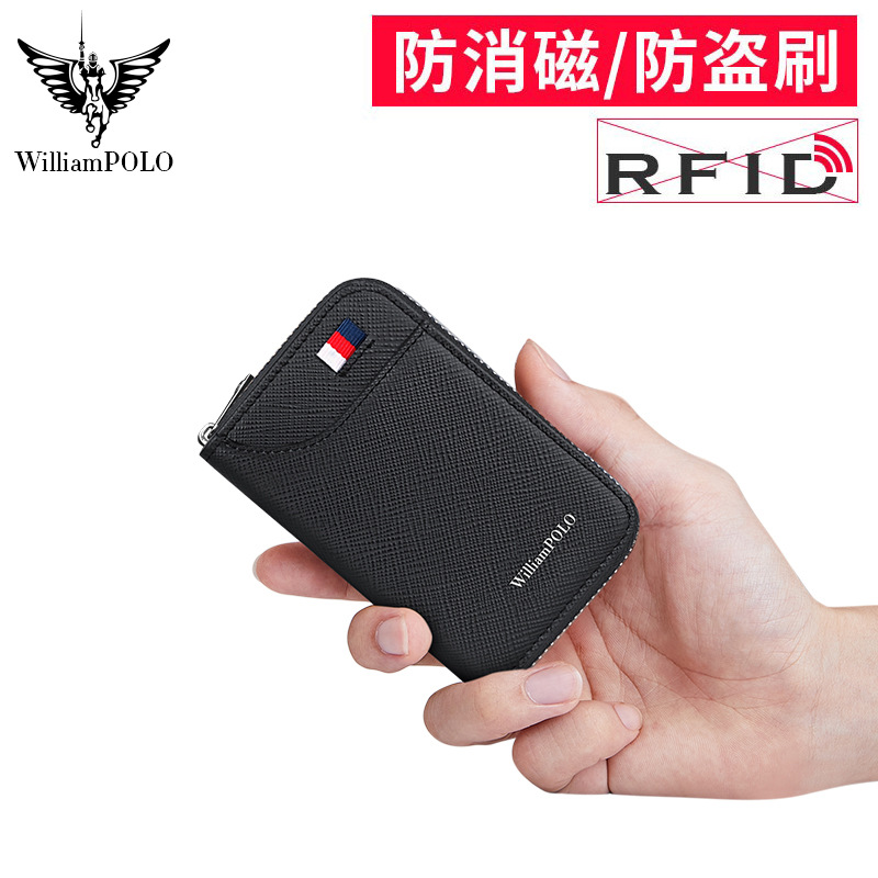 ポールカードケースメンズ本革ジッパーマルチホルダー大容量財布ミニファッション銀行カードホルダーカードケース