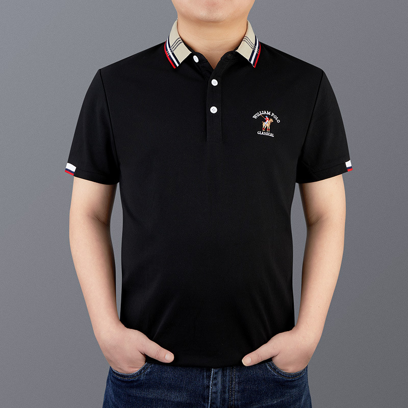 ウィリアムポロポールメンズ半袖ビジネスカジュアル珠地綿通気刺繍折り襟夏ポロシャツ