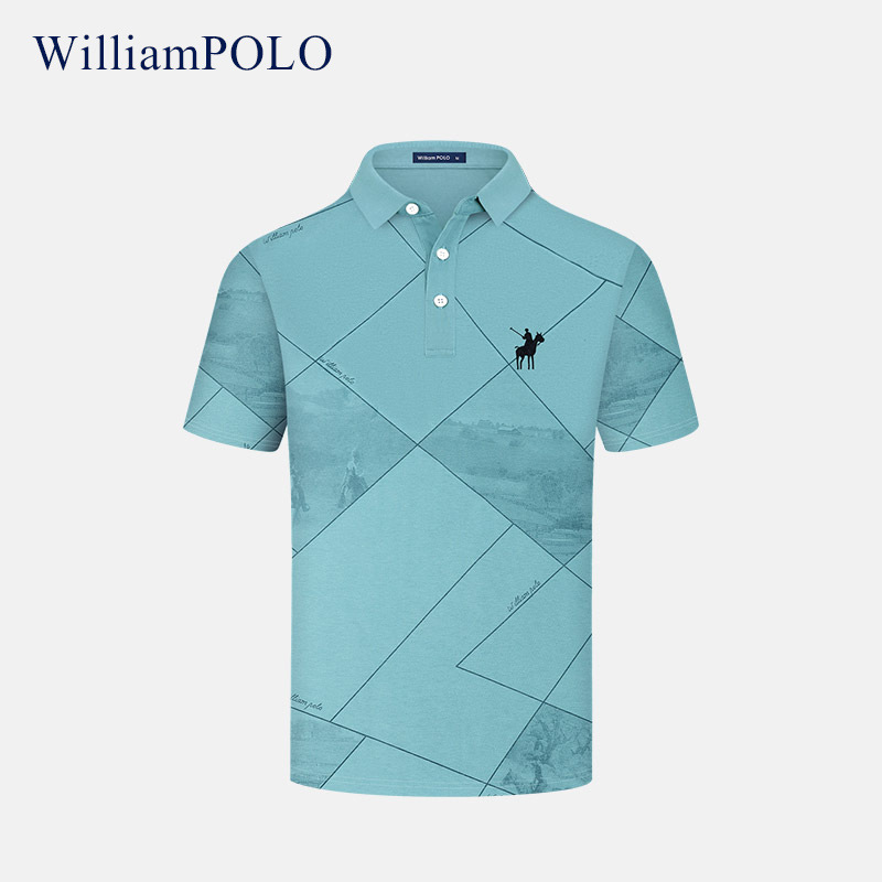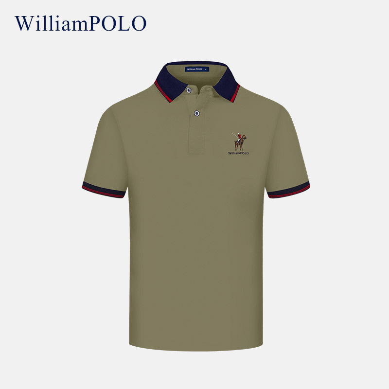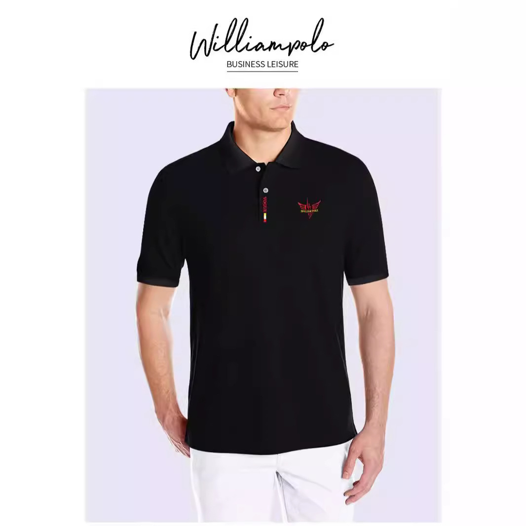 ウィリアムポロ折り襟tシャツ高级感半袖ポロシャツメンズ夏ライトビジネススリム上着