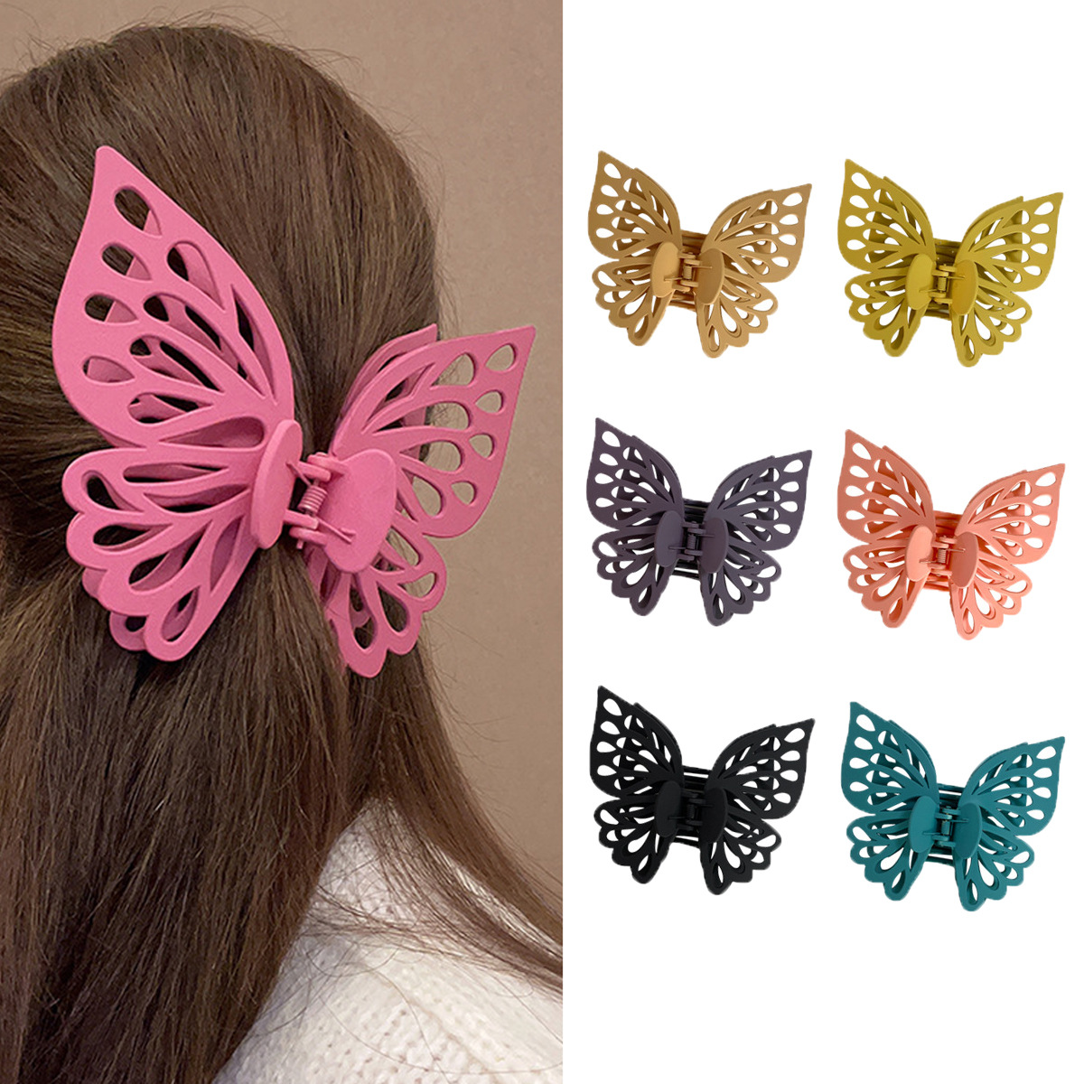 クロスボーダーの大きいサイズの透かし彫りの蝶のつかみのinsの大きいサイズのつかみの2層のクリップのサメの挟みの髪のアクセサリーの卸売り
