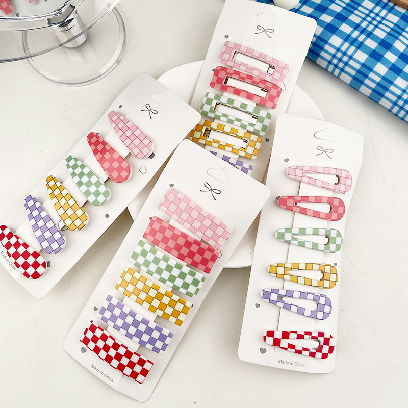 韓国の子供の甘い波の点のヘアピンのシンプルな格子のbbクリップの女性のサイドクリップの赤い系のヘアピンの前髪クリップの髪飾り