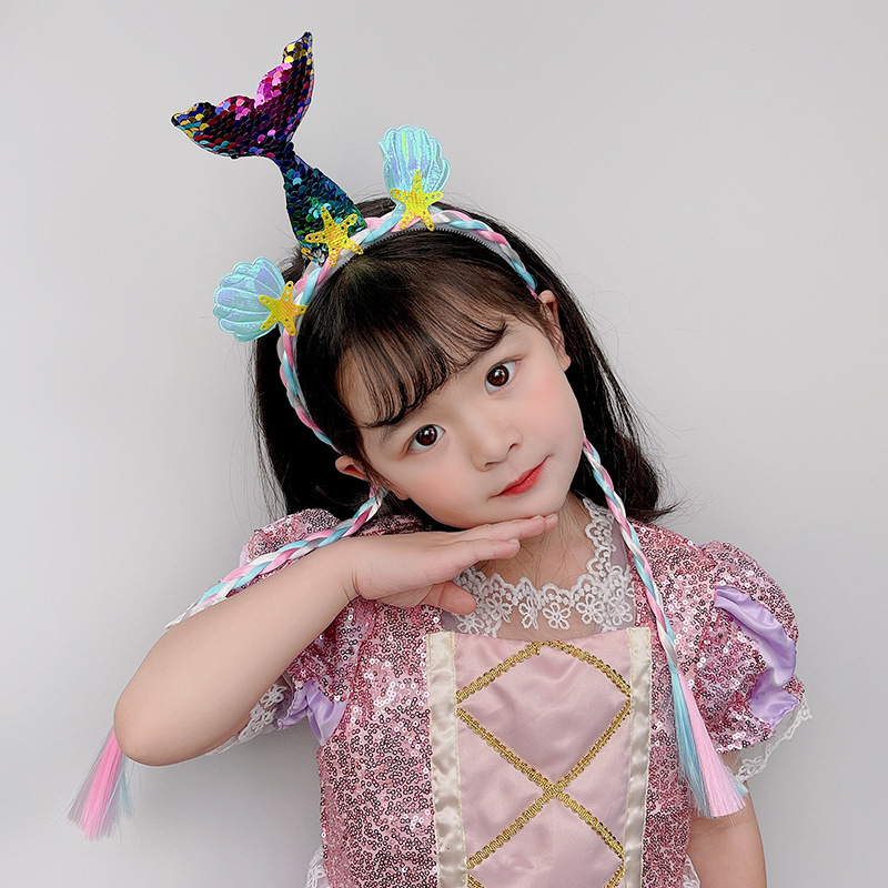 子供のマーメイドのカチューシャの赤ちゃんユニコーンのかつらのお下げのカチューシャの女の子の漫画のポニーリヘアの髪飾り