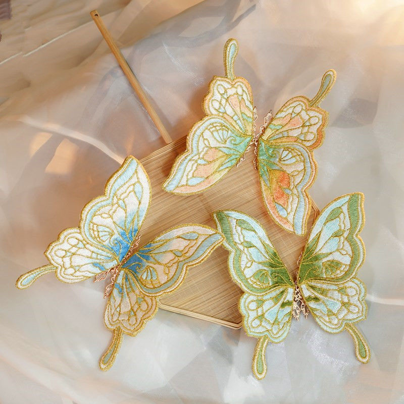 金玉蝶両面刺繍蝶ヘアピン漢服アクセサリー夢幻古風対クリップ髪飾りヘアピン女性卸売り