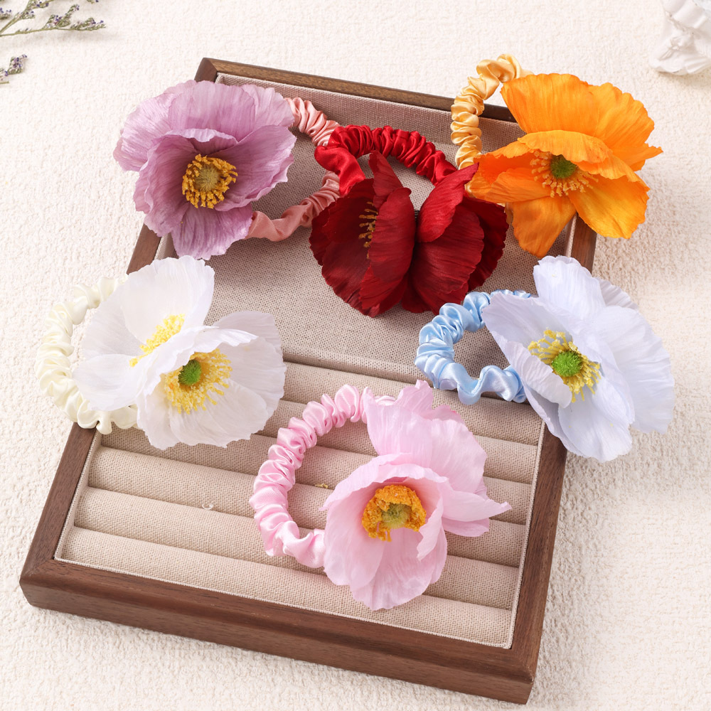 早春の新作のコクリコの花の大腸のシュシュは布芸の高級感をシミュレーションします。