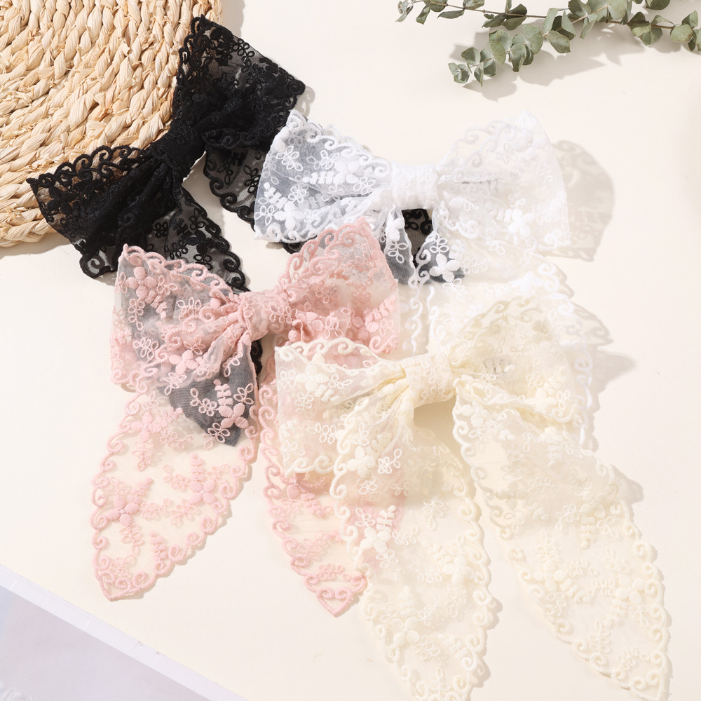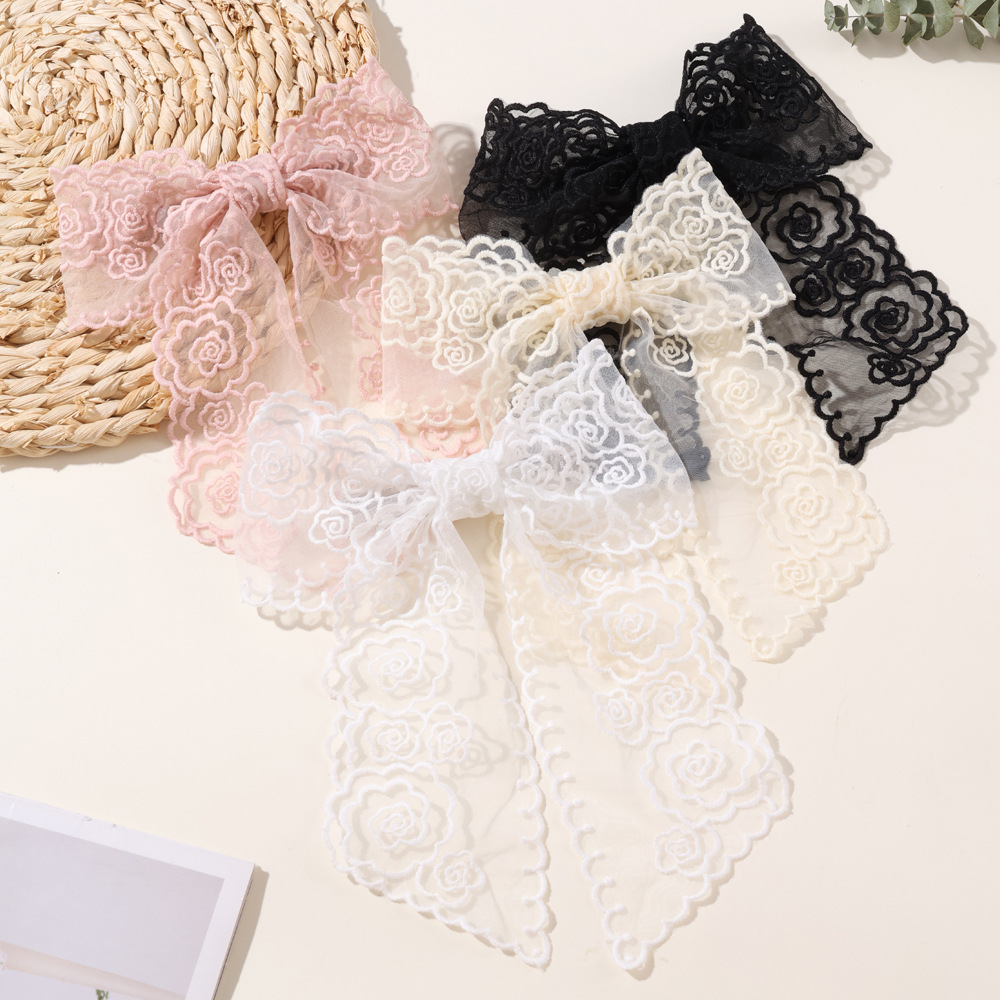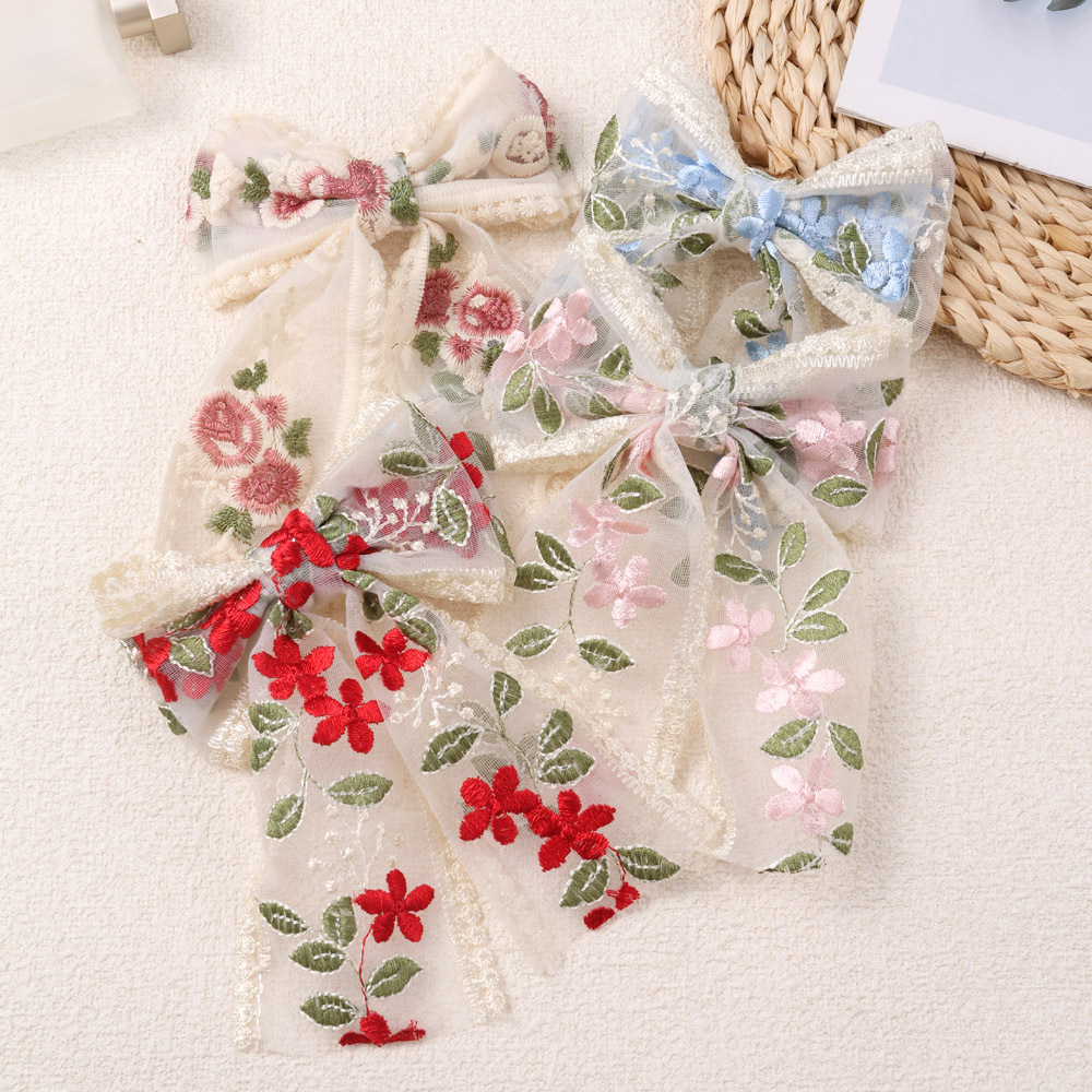 韓国版の花の刺繍の蝶結びのヘアピンの超仙レースのリボンの髪飾りの女性の後頭部のクリップの頭飾りのトップクリップ