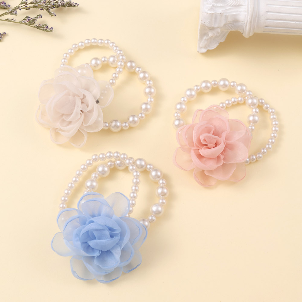 新作早春網紗花真珠髪縄低団子髪輪小清新超仙頭縄馬尾髪飾り