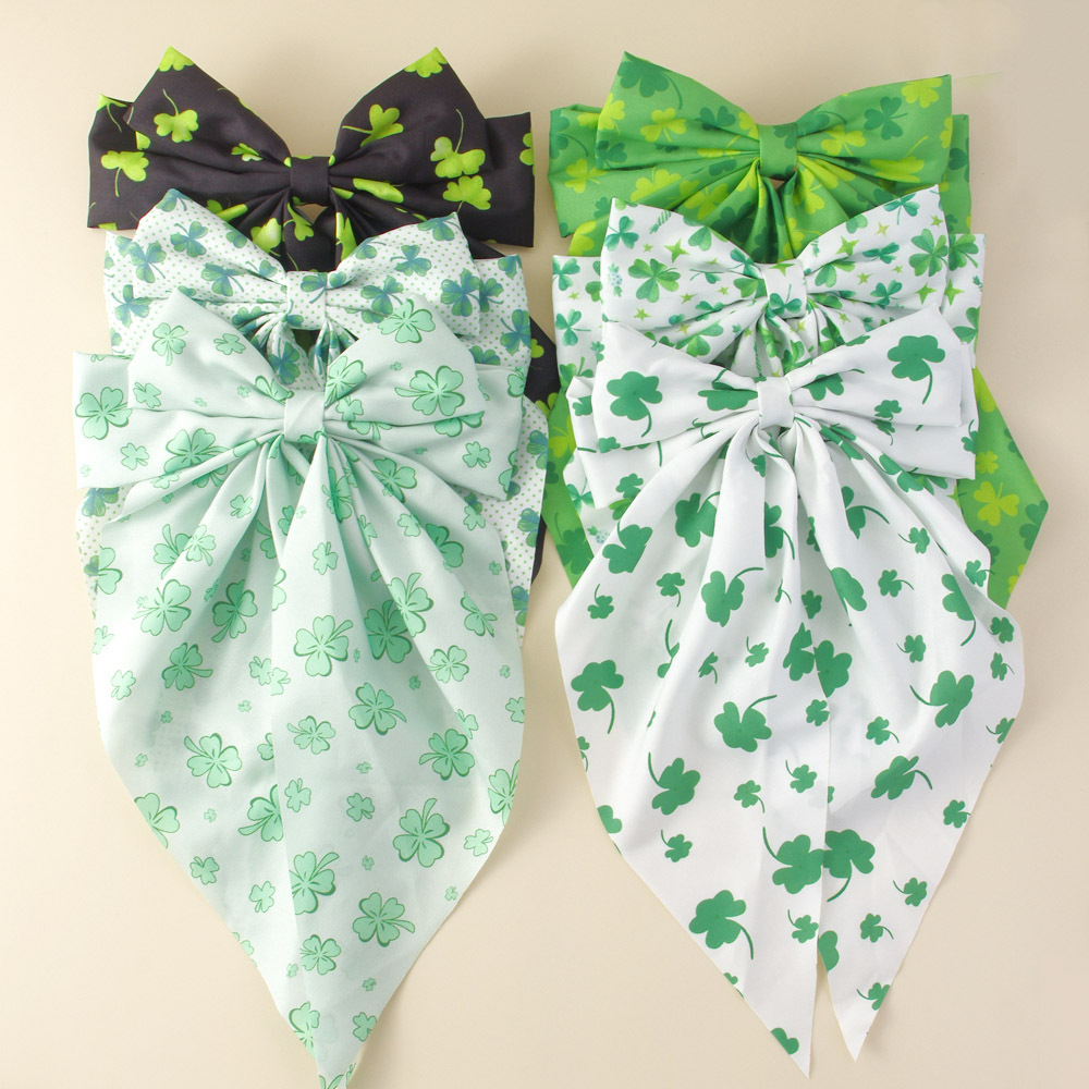 聖パリク節緑の四つ葉の草のプリントの蝶結びのリボンのスプリングのクリップの優雅なヘアピンの春の砕花の髪飾り