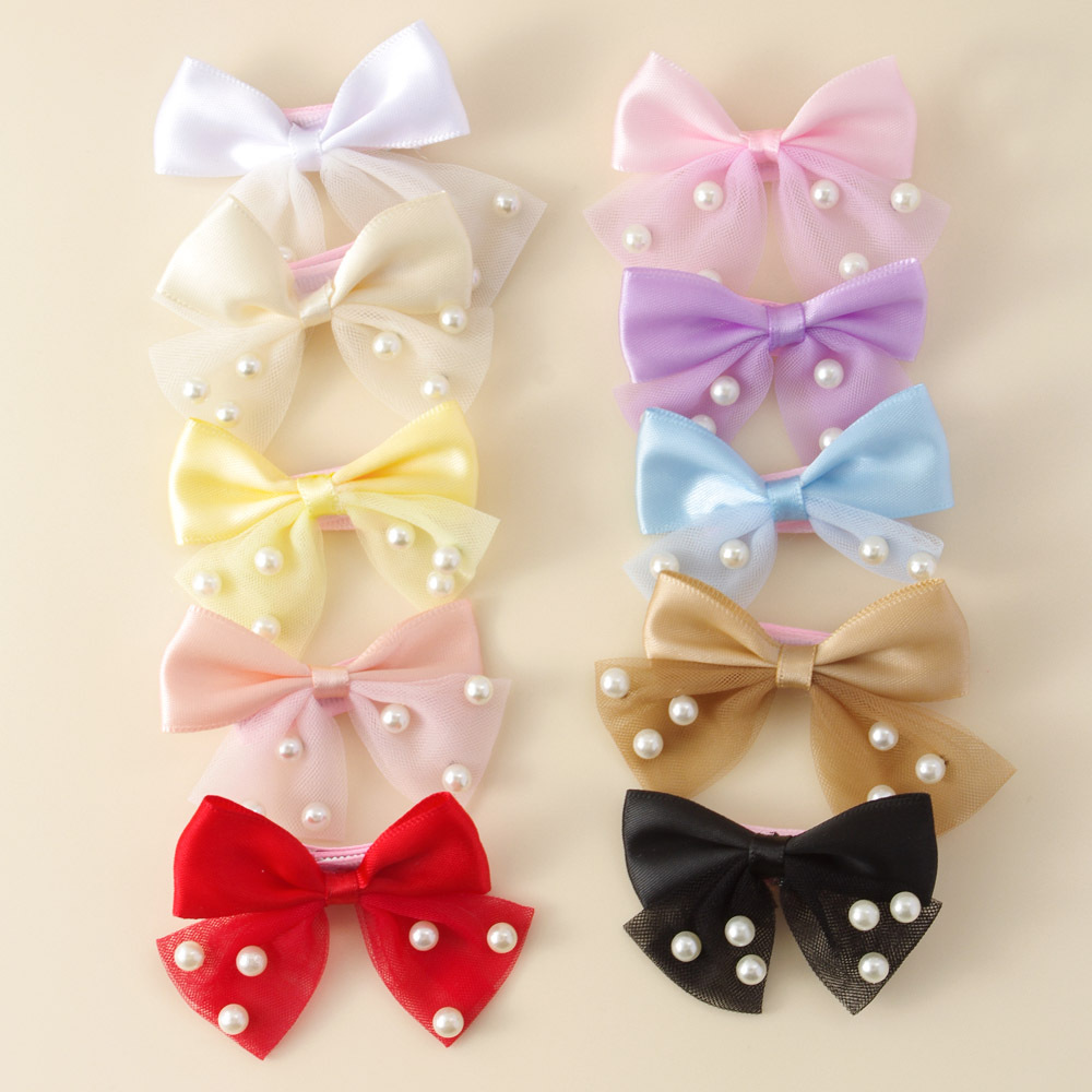 甘い網糸真珠蝶ネクタイのヘアピン小清新なアヒル口クリップネット赤少女のヘアアクセサリーかわいい髪飾り