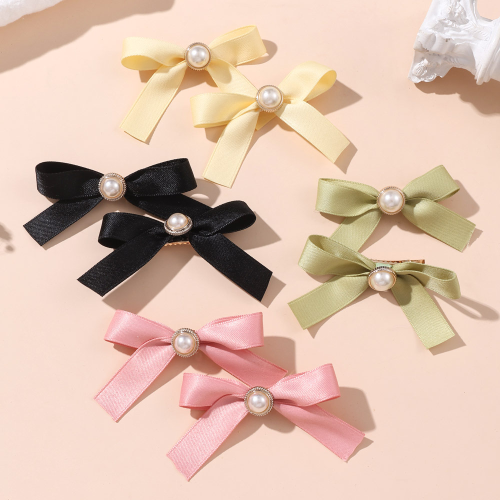 レトロ小香風真珠蝶結びヘアクリップリボンヘアピン気質カモ口クリップ高級感サイドクリップ髪飾り