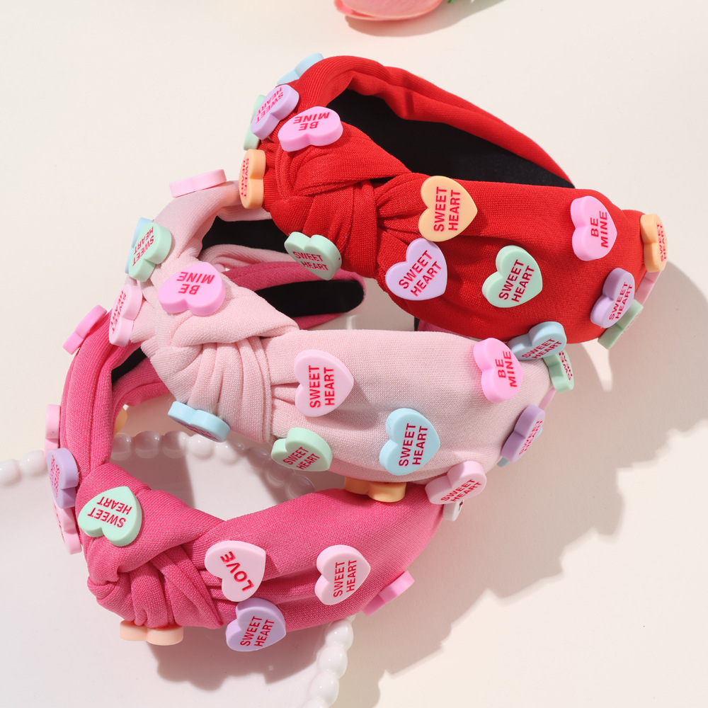 欧米の人気バレンタインデーのアルファベットの愛の赤い髪のカチューシャの広い辺は純色のカチューシャを結びます。