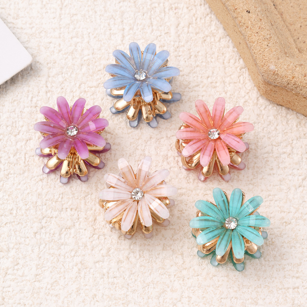 子供用の小さいサイズの花の爪の乳のカレー色の女性の砕髪の小さいつかみの高級感のミニ王女の側の前髪の挟み