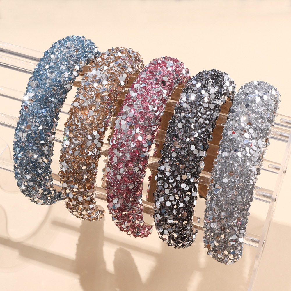 クロスボーダー高スポンジ高首トップカチューシャ女性ワイドサイド押し韓国式超フラッシュ軽豪華フラットドリル高級感髪飾り
