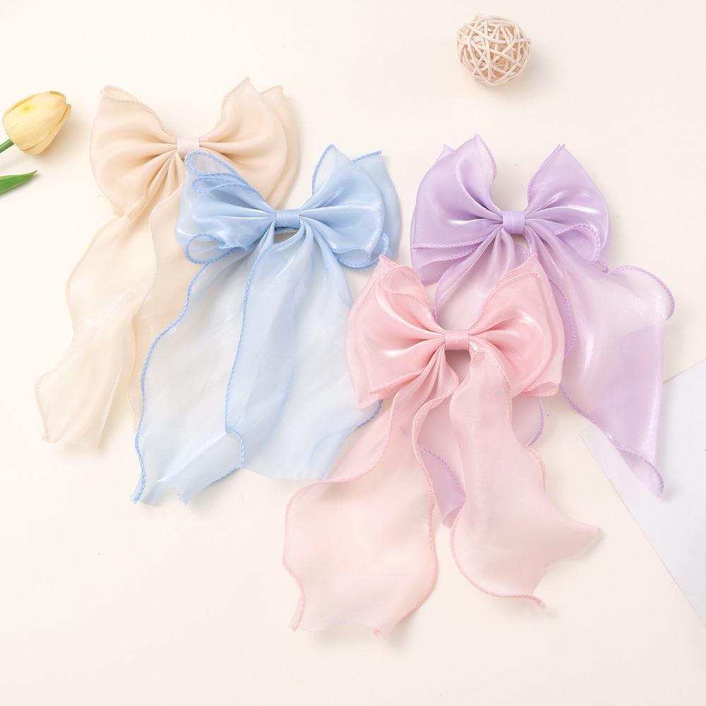 カラースパンコール蝶結びバネクリップ刺繍網糸リボンヘアクリップ優雅なリボンキラキラパーティーの髪飾り
