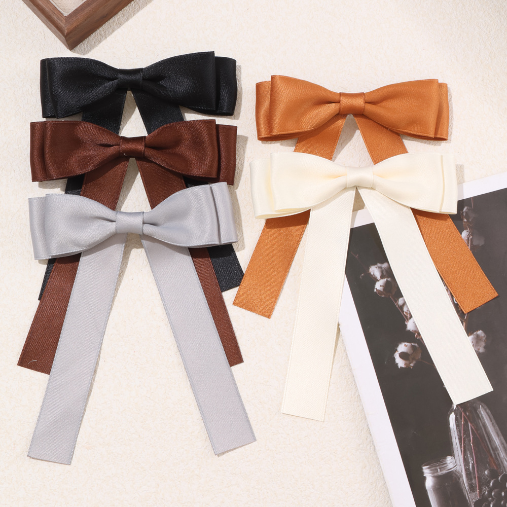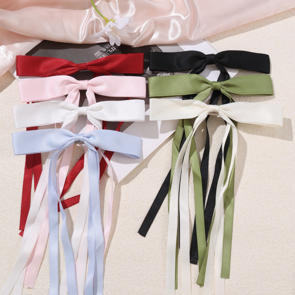 純色のサテンの蝶結びのヘアピンの新型ネットの赤い後頭部のスプリングクリップの少女のトップクリップのリボンの髪飾り
