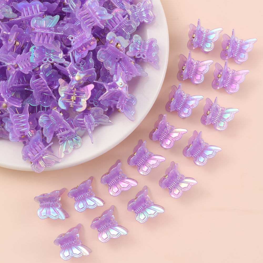 厚手の小さいサイズの透明な蝶のつかみの色の編み上げのクリップのミニの額の砕いた髪の縁のクリップの小さいサイズの髪のかつらの飾り