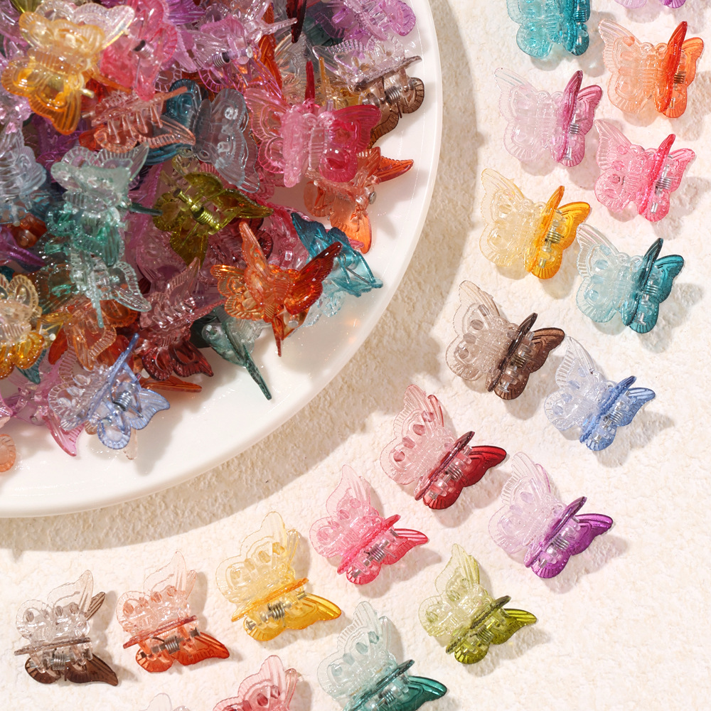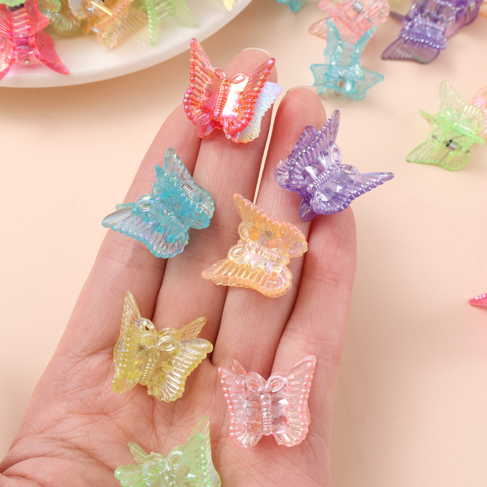 金葱粉小掴み対外貿易厚金蝶掴み子供ゼリー透き通ったプラスチックヘアピン爪プラスチッククリップアクセサリー