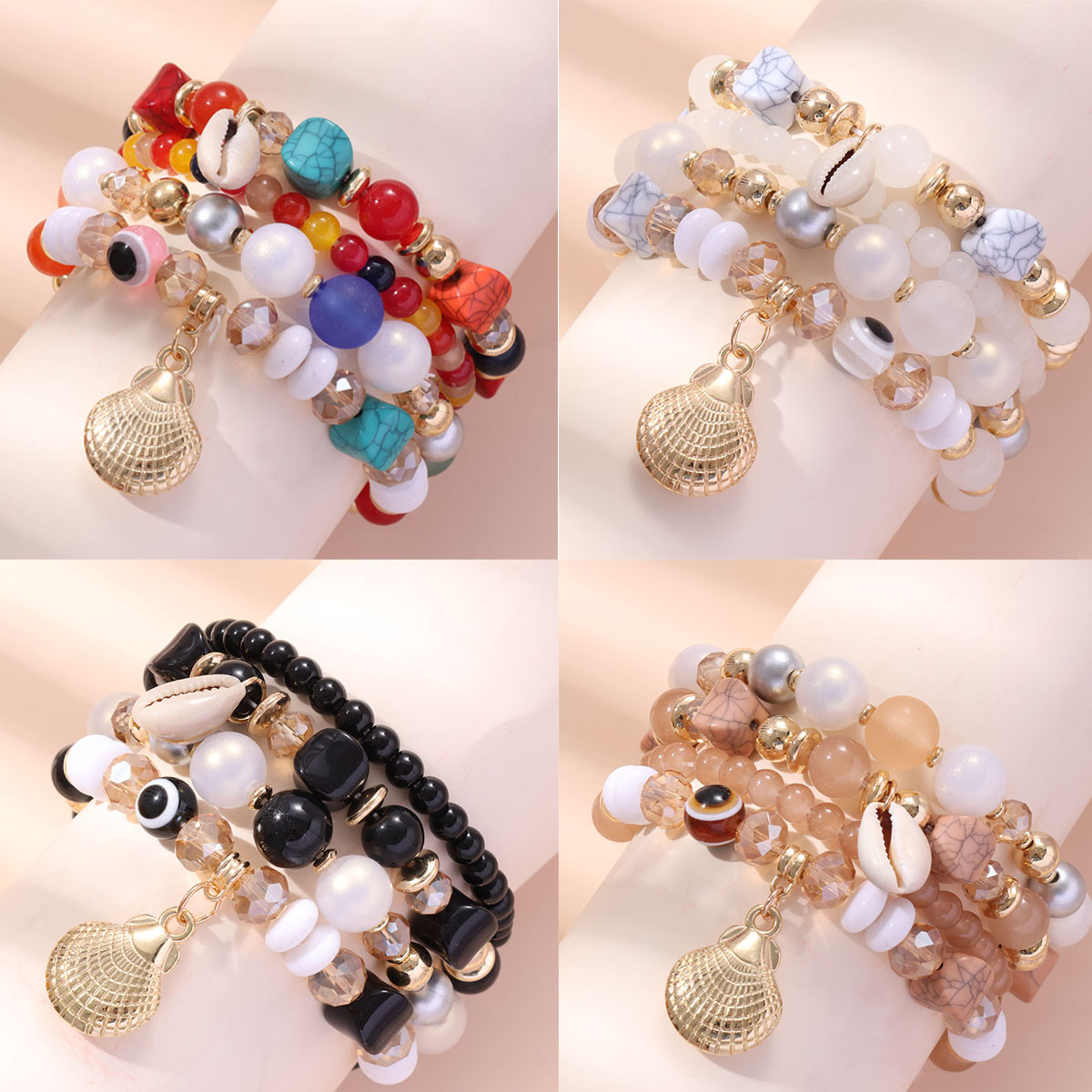 クロスボーダー爆発金ボヘミアンクリエイティブブレスレットレディースジュエリーサザエシェルクリスタル多層ビーズファッション手串