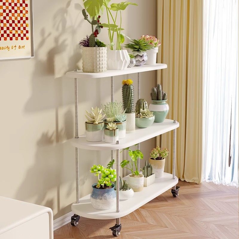 バルコニーフラワースタンド無垢材多層収納ラック車輪付きモバイル多肉植物フラワースタンドリビングルームフロアスタンドインターネットセレブフラワースタンド