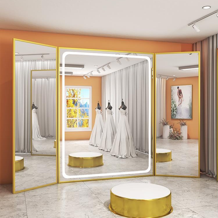 ウェディングドレスショップ用三面鏡、ドレスショップ試着用、スクエアミラー、美容、軽い高級感、痩身、防爆、70% offフロアミラーLED
