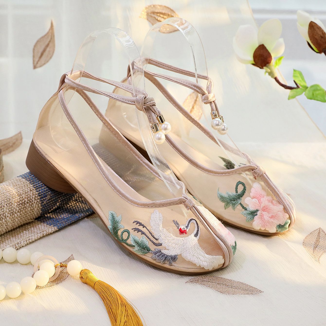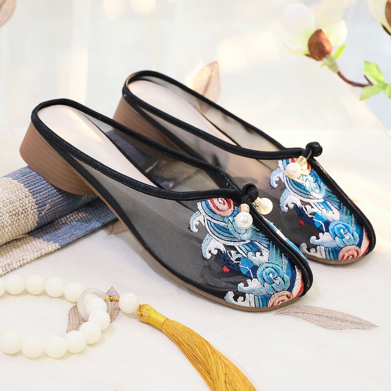 夏の新型北京刺繍靴女性古風ネット靴通気性漢服靴女性ネット靴民族風サンダル