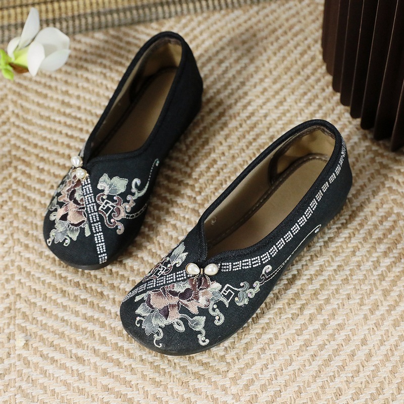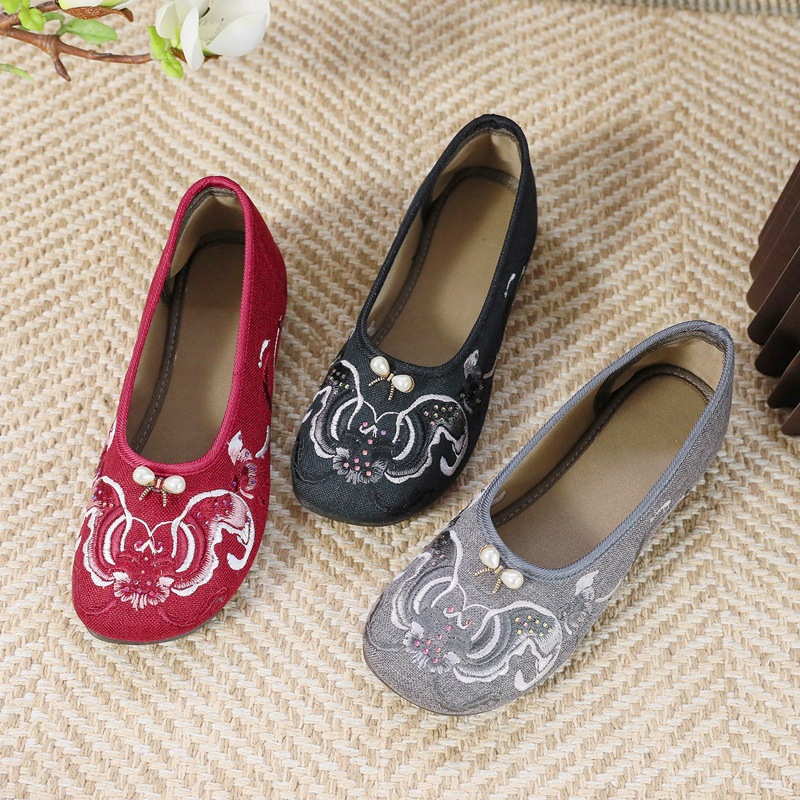 新しい夏の古い北京布靴とチャイナドレスの先の先の女性靴のダンス靴の民族風の刺繍の靴の浅い口の靴