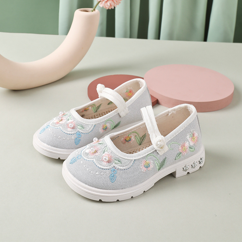 新型子供漢服靴春レジャー中国風刺繍靴女の子手作り古い北京布靴観光区ショー