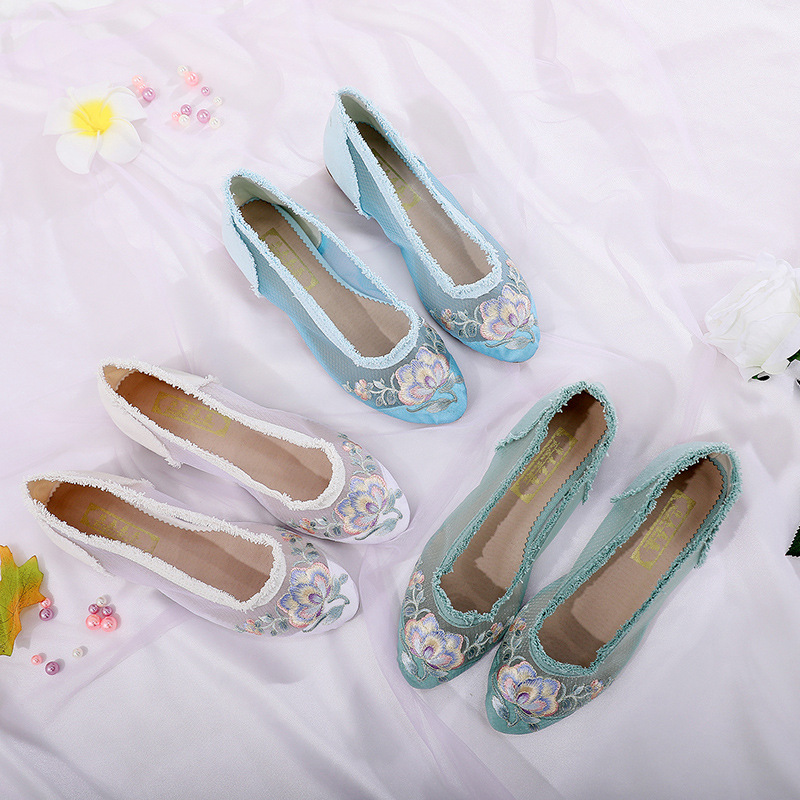 在庫一掃刺繍靴女性ネット靴は滑り止めの古い北京布靴古風ネット布漢服靴の先の靴を履いている
